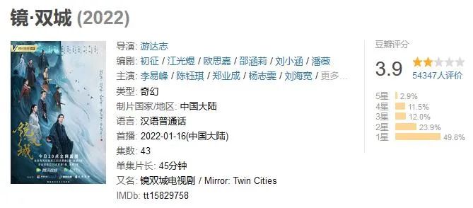 在上半年上线的仅有的4部新剧中,《与君初相识》《恰似故人归》突破优酷平台电视剧热度、会员转化率历史纪录,成绩突出。至于《镜·双城》和《凭栏一片风云起》,要么口碑稀烂要么市场反响平平。特别是S+评级的古偶《镜·双城》,还遭遇了沦为劣迹艺人的主演李易峰“背刺”,或影响到剧集的后续销售。