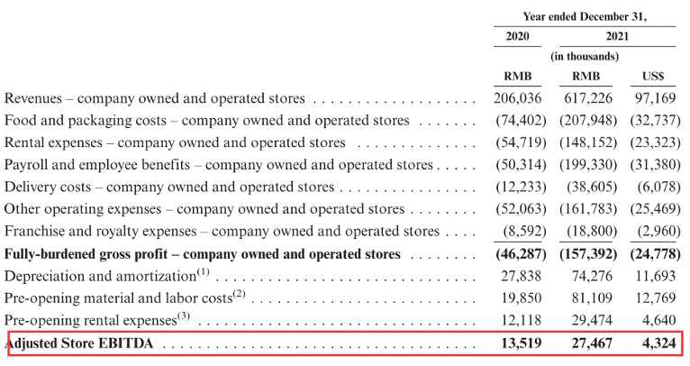 与此同时,门店盈利能力持续提升。招股书显示,2020-2021年,自营门店调整后EBITDA分别为1351.9万、2746.7万,2021年录得同比增长103.2%;自营店同店销售增长率从2020年7.4%上升至2021年15.7%。