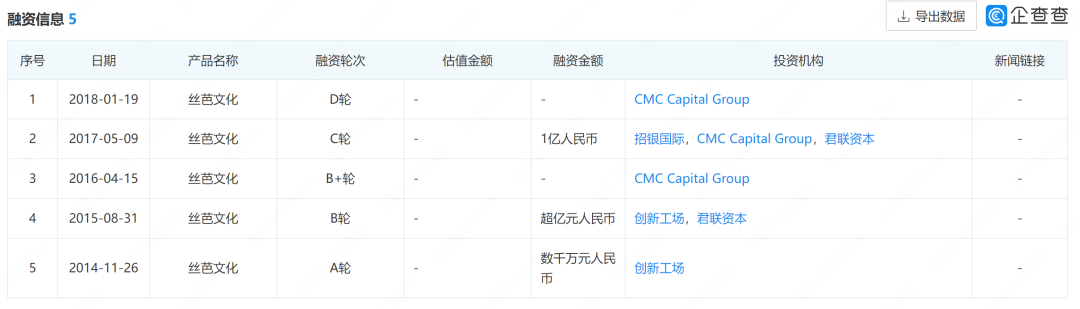企查查数据显示,丝芭传媒至今共拿到5轮融资。据了解,C轮融资过后,丝芭传媒的估值曾一度达到50亿以上。那段时间也是国内粉丝经济最受看好的时候,爆发的高潮便是后来养成综艺的出现和爆火。