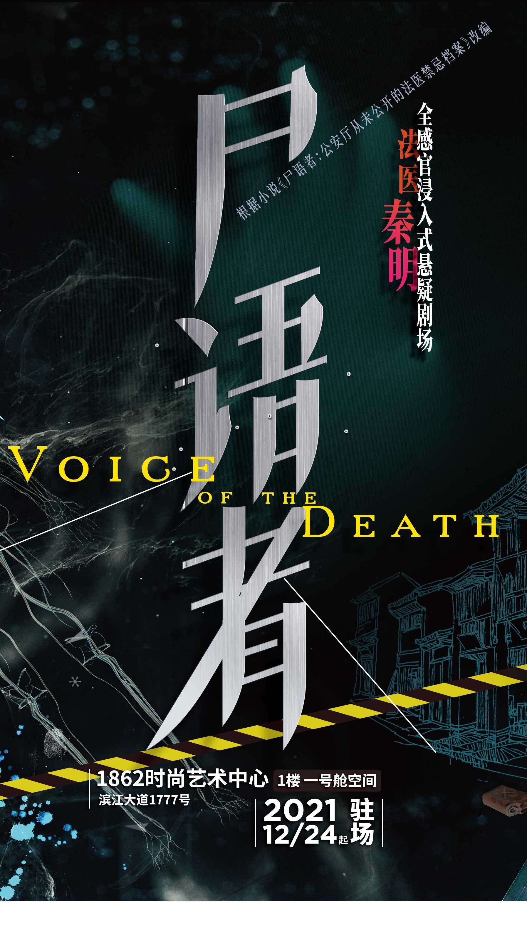 从2021年12月开始,《法医秦明-尸语者》在1862时尚艺术中心开启年度驻场演出。作为一部浸入式悬疑剧,《法医秦明-尸语者》适合剧本杀爱好者和密室爱好者:为了给每场观众带来真实体验,舞美场景采用全实景等比建模,1:1还原的街道,利用明暗交错的光线和烟雾装置模拟天气变化,这些感官体验仿佛让人一脚迈入原著中的荒凉小镇。观众将穿过人行道,绕过小镇广场,进入狭窄巷道,踏入不同的故事线。
