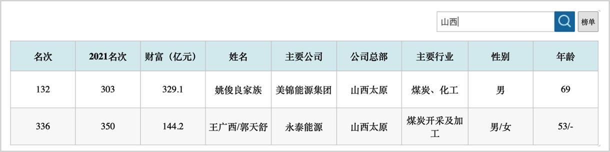 在《2022新财富500富人榜》中,山西榜上有名的只有美锦能源姚俊良家族和永泰能源王广西夫妻。受益于煤价大幅上涨,姚俊良家族以329.1亿元财富值位居132名,同比跃升171位,为山西第一。