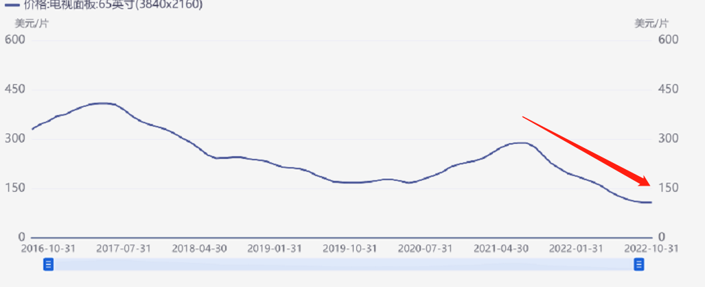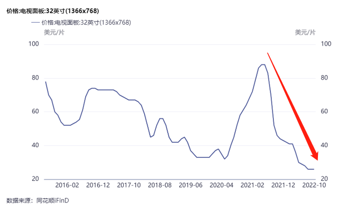 不论是何种尺寸的面板,价格均创下近六年的新低。iFind数据显示,65英寸的大尺寸面板、32英寸的中尺寸面板,其价格均从去年下半年开始下滑,近期达到低点。