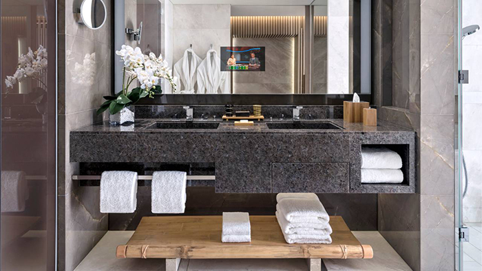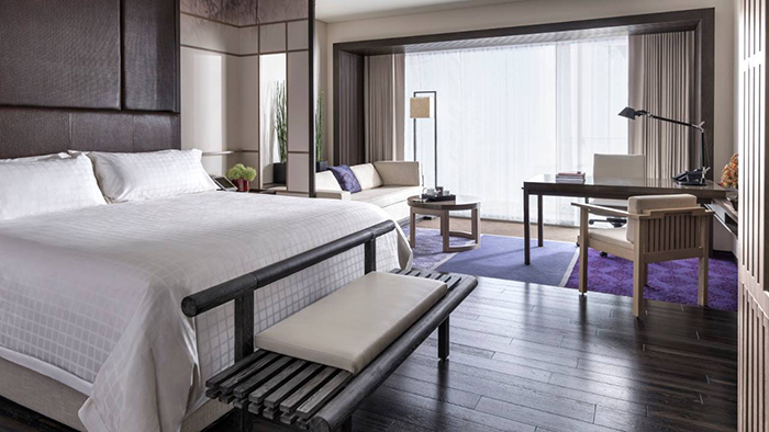 酒店室内通过充满自然质感的木材、榻榻米、漆工,体现日本卓越的传统工艺美学。也将世界各国的最先进的居住设施与日本传统的风雅进行平衡调和。让客人在现代人感到舒适的居住环境中,从细部感受日本古往今来的匠心。