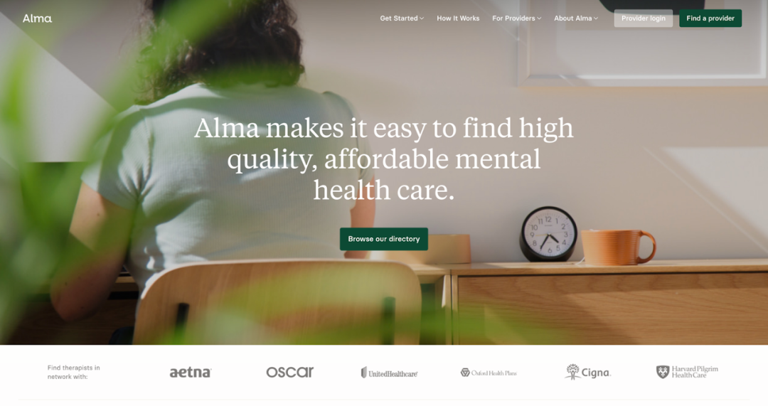 Alma目前已经签约了8000名心理健康专业治疗师,并与包括Cigna在内的保险公司以及CVS Health Corp.和 UnitedHealth Group Inc.等单位签订了治疗师可以使用的协议。