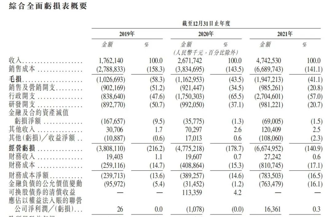 按照威马此前发布的招股书,其2019年至2021年营收分别为17.62亿元、26.71亿元和47.43亿元,年内亏损则分别达到41.45亿元、50.84亿元和82.06亿元,近3年亏损累计已达174.35亿元之多。