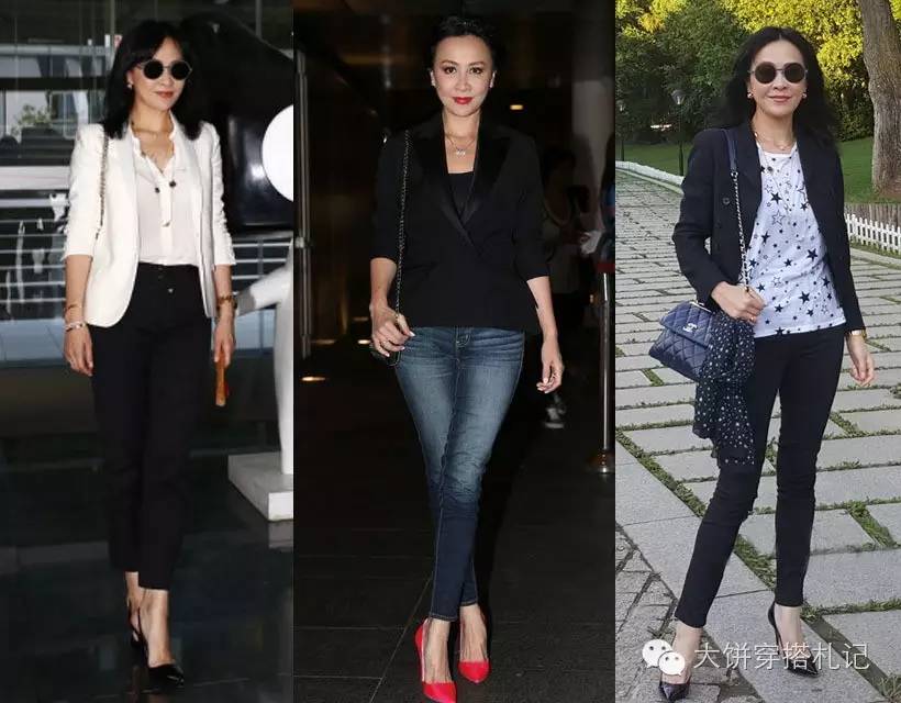那么对于有一定地位和年龄的刘嘉玲来说,有质感的基础单品才能更好的凸显气场,简洁的剪裁与简单的颜色就是打造“霸道女总裁”造型的关键。