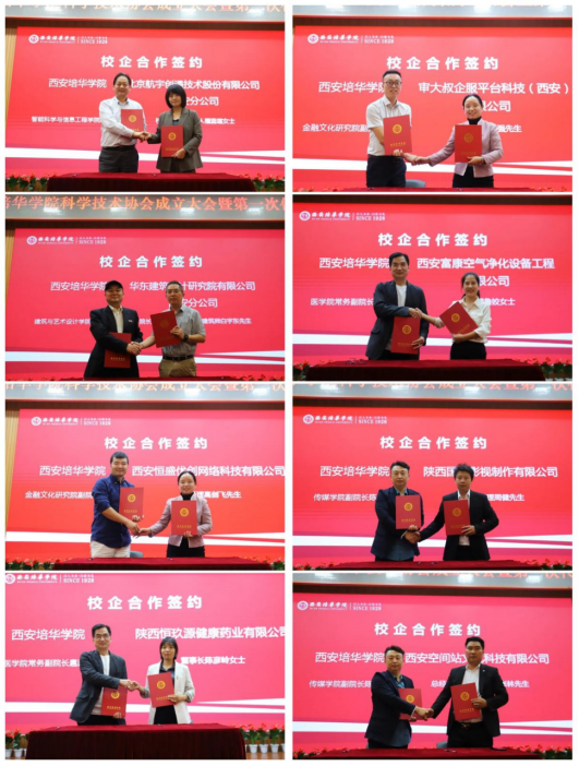 会议现场,西安培华学院相关学院与来访的多家企业方代表共同签署了一系列产学研合作框架协议。