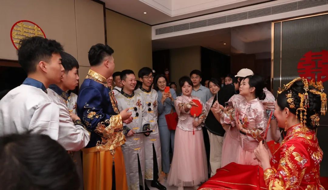 “前一晚,我们会和新娘一起睡,主要是排解她们的婚前焦虑。”谢宇科说。