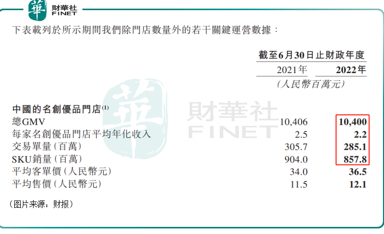 另外,2022财年,名创优品中国门店的总GMV、每家门店的平均年化收入、交易单量、SKU销量均出现下滑,唯有平均客单价和平均售价两项关键运营数据实现上涨。