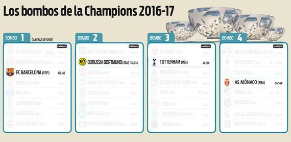 根据欧冠赛制,32强将被分为4个档次,每个档次8支球队,每个小组将各有一支不同档次的球队。其中,欧足联积分排名前七位的联赛冠军队和上赛季欧冠冠军将自动成为种子队进入第一档,分别是:皇家马德里、巴塞罗那、莱斯特城、拜仁慕尼黑、尤文图斯、本菲卡、巴黎圣日耳曼和莫斯科中央陆军。