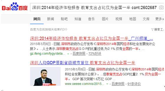 公开数据显示,2011年深圳市生产总值突破1.1万亿元,而教育投入占深圳市生产总值的比重只有1.9%。在去年,媒体又出现了这样一个新闻: