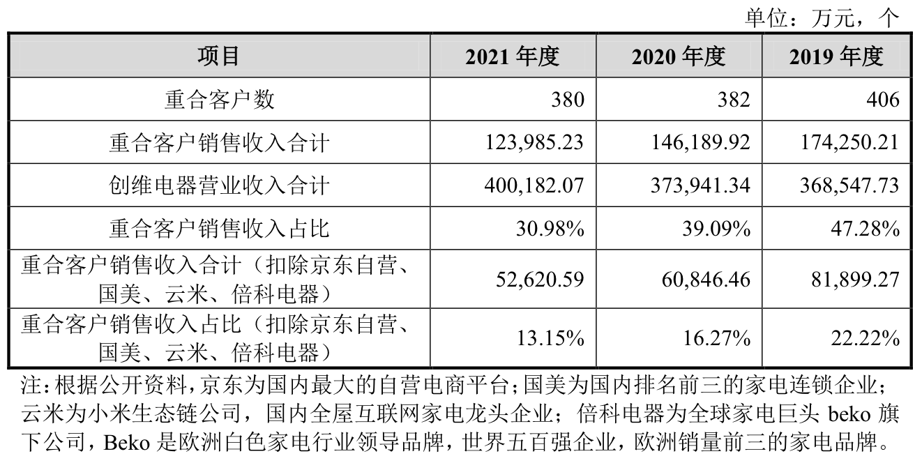 对此,创维电器回应,截至2021年12月31日,除了创维电器外,控股股东创维集团(百慕大)控制的其他企业的主营业务不存在冰箱、洗衣机的研发、生产业务,但存在部分企业少量涉及冰箱、洗衣机产品的销售业务,作为创维电器经销商向终端消费者销售冰箱、洗衣机产品,金额及占比较小,不存在对公司构成重大不利影响的同业竞争。