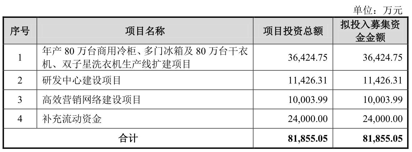 而原本,此番创维电器计划融资8.1855亿元,就有进行大规模扩产的项目,约3.64亿元投入到“年产80万台商用冷柜、多门冰箱及80万台干衣机、双子星洗衣机生产线扩建项目”。