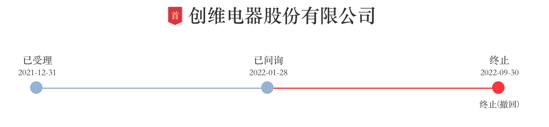 其实就在受理之后,创维电器在2022年3月18日,还主动申请中止过发行上市审核程序。而到了2022年3月31日,因IPO申请文件中记载的财务资料过了有效期,公司需要进一步补充提交,又中止了一次。直到2022年5月17日,创维电器主动申请中止审核情形已消除,且已完成财务资料更新,深交所才恢复了其发行上市审核的流程。