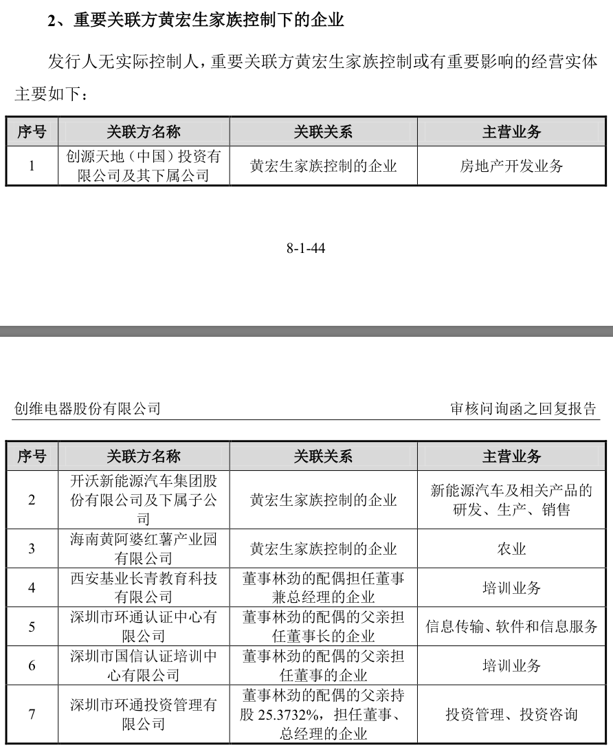 不受黄宏生及其一致行动人实际控制的创维集团(百慕大),控制的企业有198家,其业务主要涵盖多媒体业务、智能系统技术业务、智能电器业务及现代服务业务,其中创维电器的冰洗业务属于智能电器业务,其中的创维RGB、Skyworth Overseas Development Limited、深圳安时达电商有限公司等存在少量从事冰箱、洗衣机产品的销售业务的情况,创维无线2019年存在销售大屏手机产品的情况。