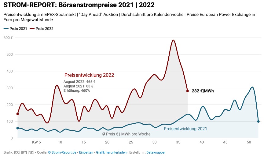不过,居民电价的涨幅也与具体城市和电力供应商有关。例如笔者居住的法兰克福市区电价至今仍保持在28欧分/度,而笔者居住的另一套位于山区的住宅电价已经跳涨至61欧分/度。
