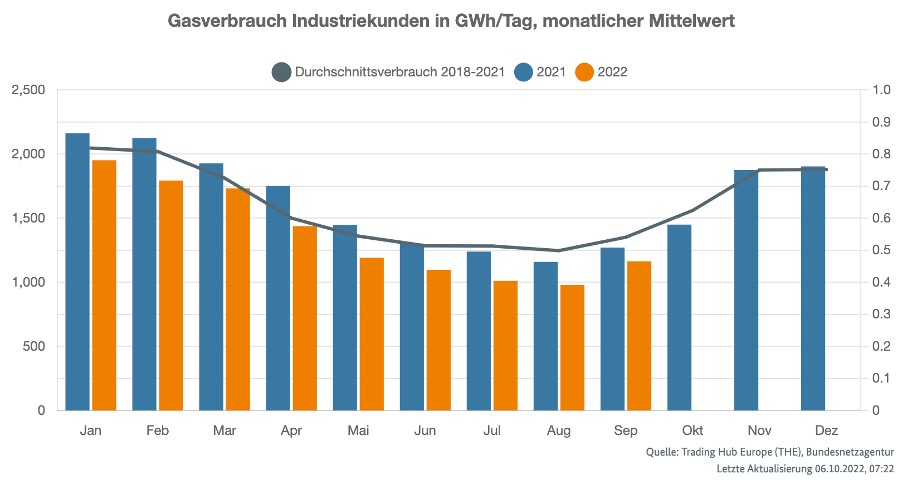 根据德国网络署的数据显示,天然气预警机制是以牺牲工业的方式确保居民用气,其中工业部门的用气量在2022年每个月均少于2021年同期水平。