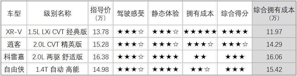 XR-V由于本身定价较低,1.5L发动机排量可享受购置税补贴,同时又油费和二手车残值上,有较强的竞争力,综合保有成本最低。