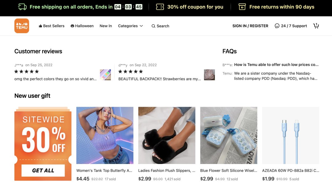9月初,海外版拼多多Temu登陆美国,至今已一月有余。少了标志性的“砍一刀”,依靠出人意料的低价,Temu俘获了一批当地用户的心。