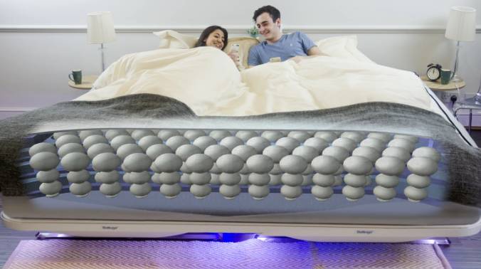 Balluga 非常厚实而且有弹性,排列的小球可以检测到床垫不同区域的压力,自动调节小球的气压,从而达到调节床的软硬度。。