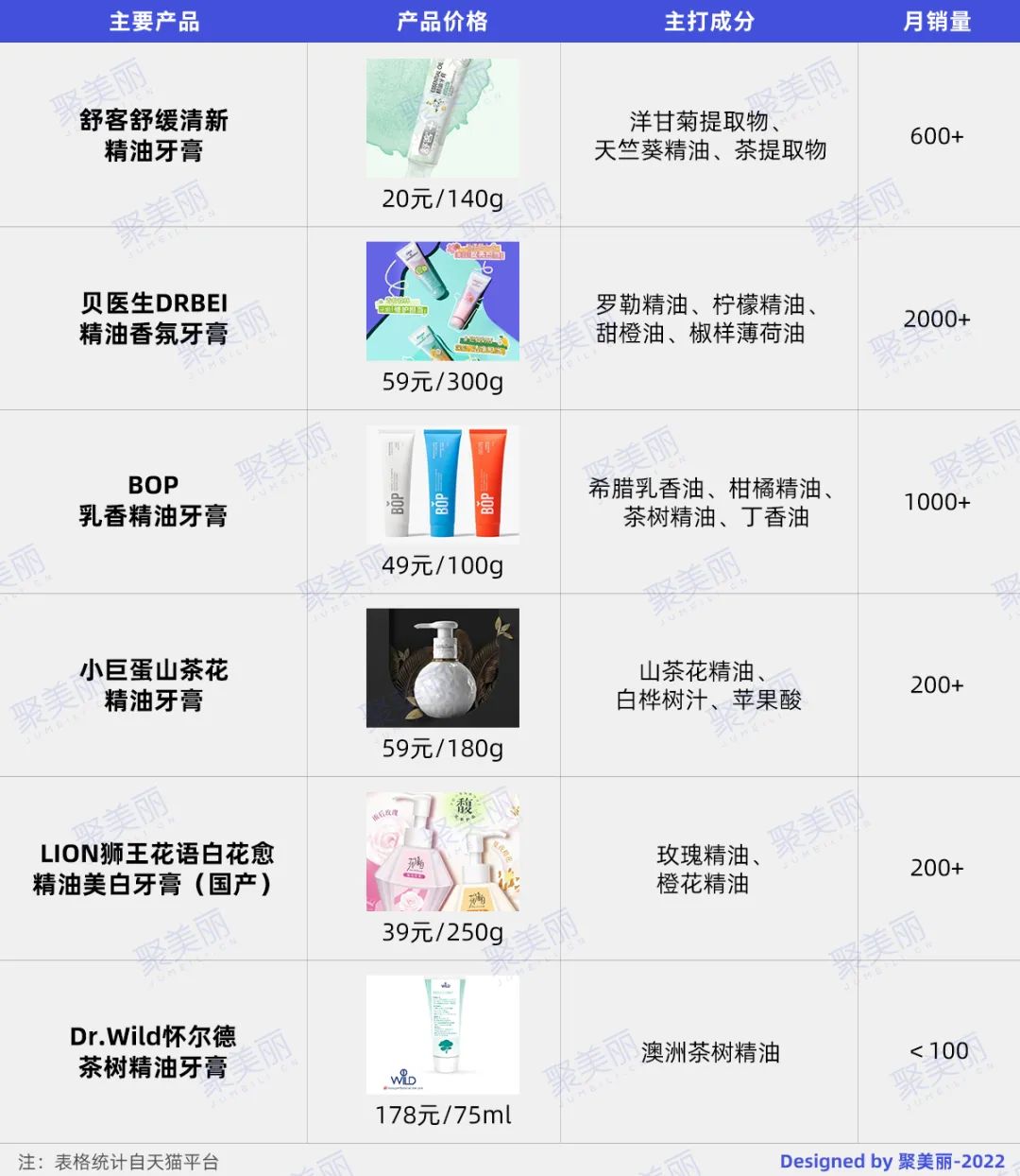 纵观市面上,众多知名口腔品牌都推出了精油牙膏,比如舒客、狮王、贝医生、皓齿健等经典品牌,也包括BOP、甘米蓝、小巨蛋、Dr.Wild 怀尔德等小众品牌,相关产品的价格区间在20-140元/支不等。