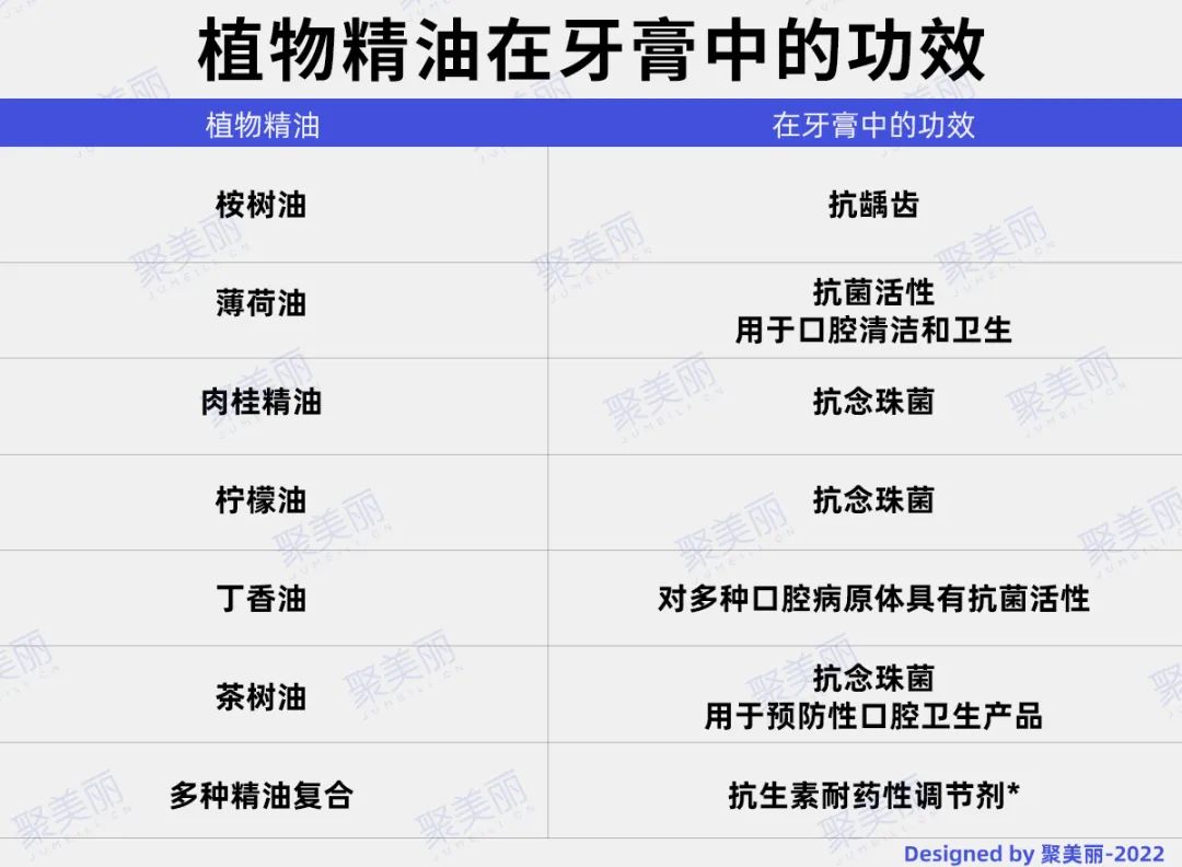 在这些观点中,植物精油似乎成为口腔护理产品中刺激性抗菌成分的更安全、天然的替代品。