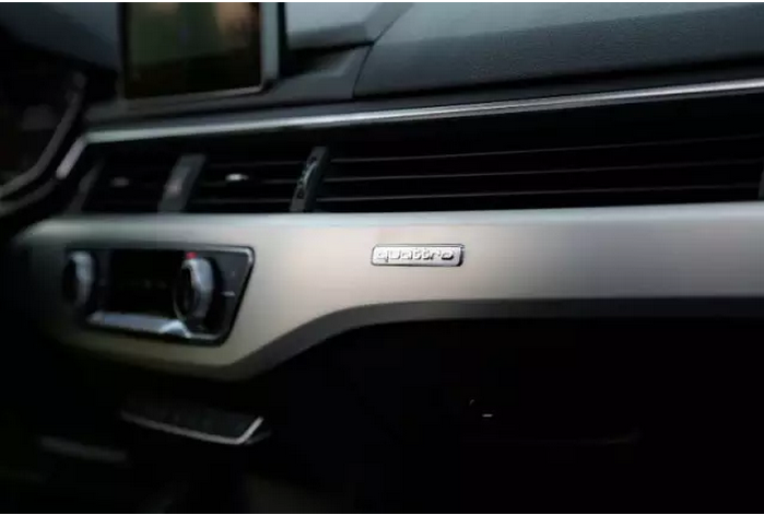 如果说外观是见仁见智,那么我认为,在内饰质感上,全新奥迪A4L取得了超过目前竞争对手的做工水准。空调面板设计的非常简洁,中间银色按键非常有质感,只要轻轻触碰银色按键屏幕上就会显示出此选项的所有自选项,通过上下拨动选择你想要的功能。