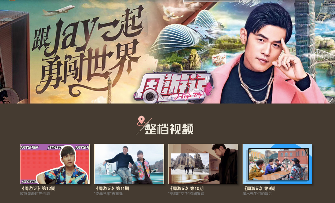 真人秀《周游记》第一季,则是由周杰伦主演,每集邀请不同知名公众人士客串演出的节目,根据公开可得评级数据,这12集的平均收视率在同一时段播出的所有电视节目中排名第一。