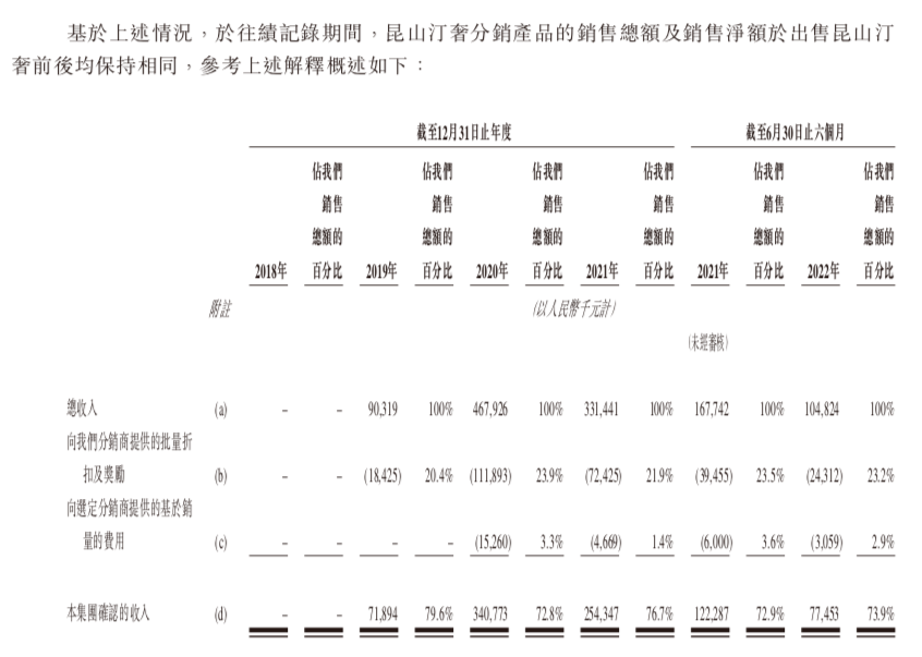 《招股书》显示,巨星传奇的大部分经销商也来自昆山汀奢,截至2022年6月30日,昆山汀奢的经销商占总经销商的98%。