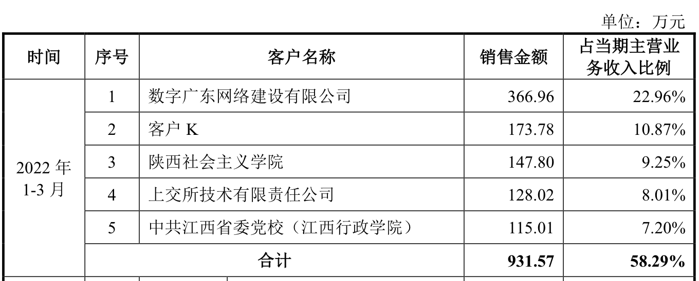 在2022年第一季度前五客户中,还能看到梦创双杨服务于交易所。