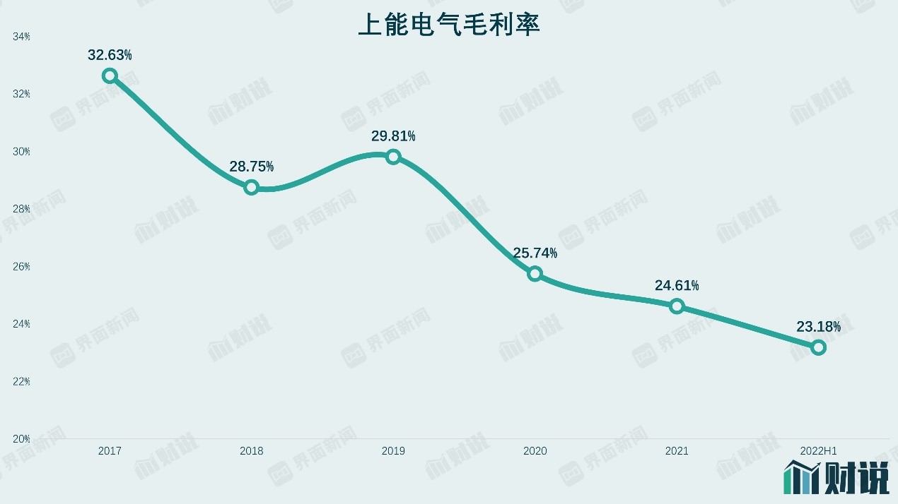 更令人担心的是,上能电气的研发效果并没有得到体现,公司毛利率不断下滑,已由2017年的32.63%下滑至今年上半年的23.18%。