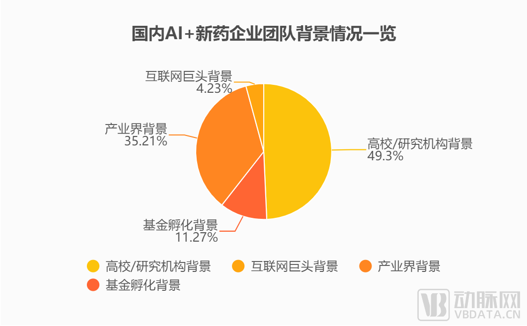 经动脉新医药不完全统计,在国内71家AI+新药企业中,高校/科研机构背景出身的AI+新药团队占国内所有AI+新药团队数量的49.3%。其中,海外高校/科研机构背景出身的AI+新药团队有13家,国内高校/科研机构背景出身的AI+新药团队有22家。