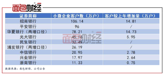 普惠型小微企业有贷客户数:招行、平安户数居前