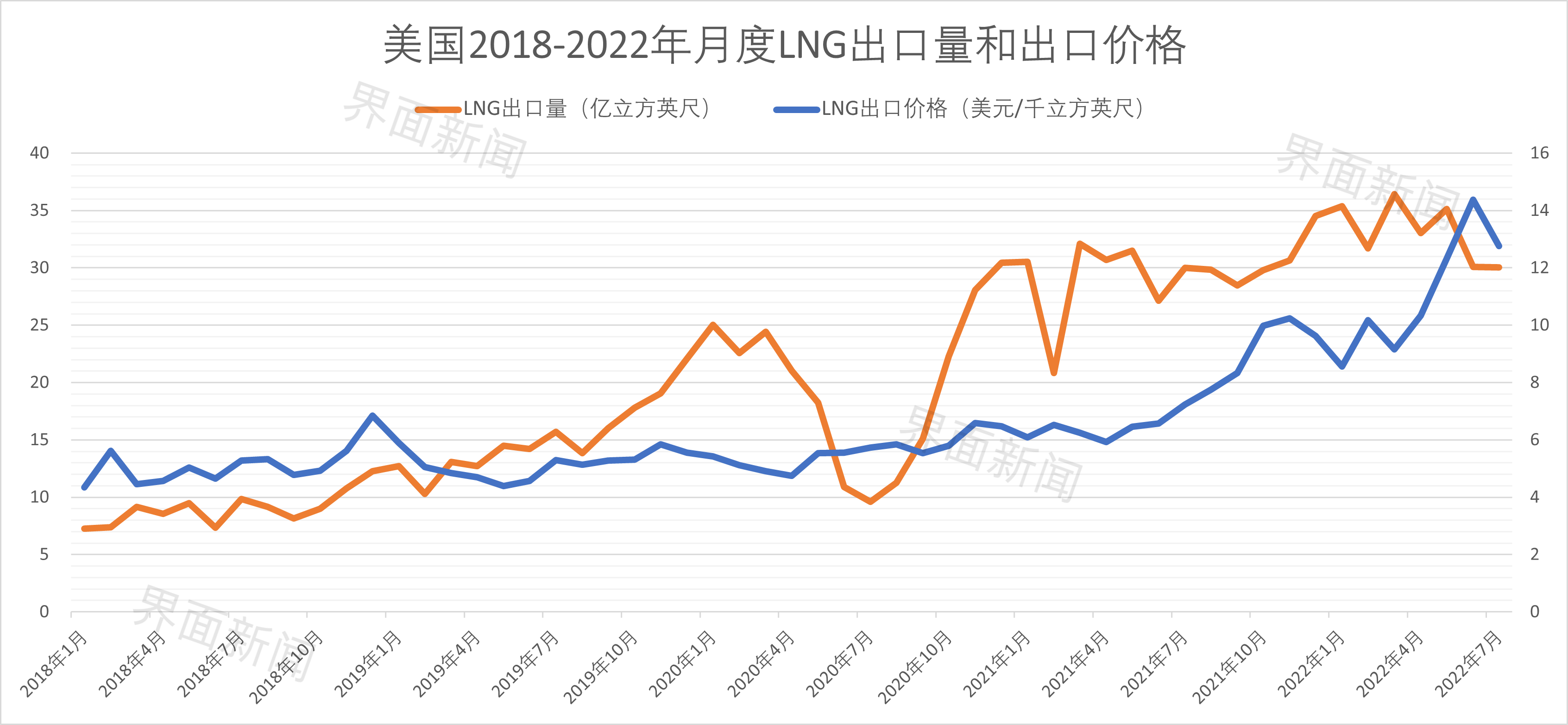 界面新闻根据美国能源署每月公布的数据统计,今年1-7月,美国LNG出口量共656亿立方米,同比增14.3%;总出口金额约255亿美元,同比增约96%。