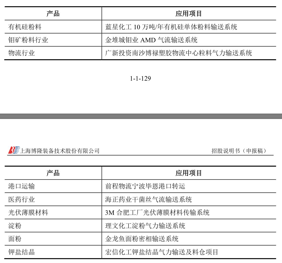 博隆技术在国内主要竞争对手系上海金申德粉体工程有限公司,其主要从事中石化系统的炼化产品气力输送系统业务。其他国内气力输送厂商在合成树脂行业涉足较少,与公司的直接竞争较小,可比性较弱。博隆技术表示并没有直接可比的上市公司。