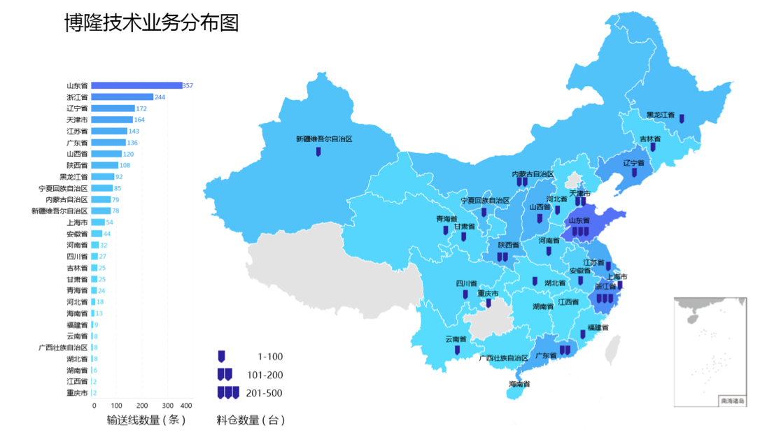 国内目前尚未出现广泛涵盖各个应用行业的大型龙头企业。多数企业聚焦于个别应用领域,凭借技术积累,提供气力输送系统或部分关键设备。作为国内气力输送行业的领先企业之一,博隆技术目前累计完成的大型气力输送系统项目达上百个,根据中国石油和石化工程研究会石油化工技术装备专业委员会关于市场占有率的文件显示,博隆技术固体粉粒体输送系统2019年-2021年国内市场占有率均达到30%以上。