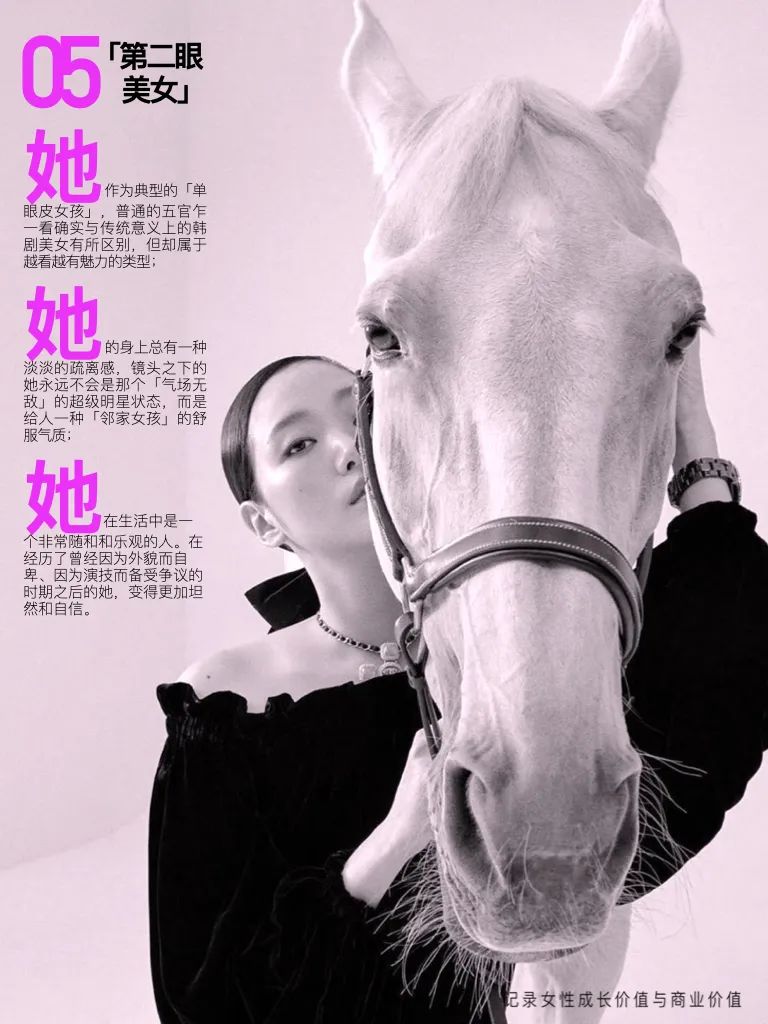 她,作为典型的「单眼皮女孩」,普通的五官乍一看确实与传统意义上的韩剧美女有所区别,但却是属于越看越有魅力的类型;