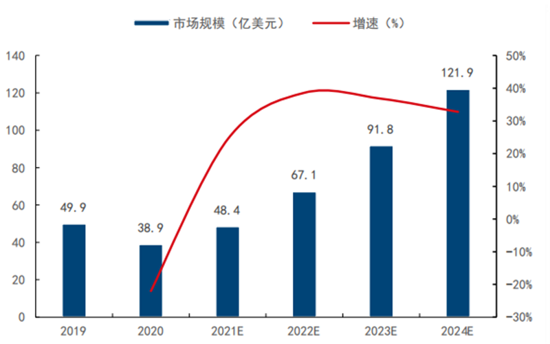 预计全球市场规模21-24年复合增速36%,21-26年投资规模复合增速38.5%:1)市场规模:根据Statista,2020年全球VR/AR市场规模约为38.9亿美元,2021年为48.4亿美元,预计2024年全球产业规模有望达121.9亿美元,2021-2024年复合在增速或突破36%;2)投资规模:2021年全球AR/VR总投资规模接近146.7亿美元,并有望在2026年增至747.3亿美元,五年复合增长率(CAGR)将达38.5%。