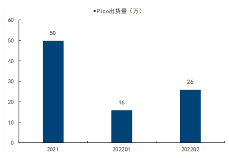 Pico被称调高了原定的2022年VR销售目标,从100万台增加至约180万台,Pico4的上市有望带动Pico销量更上一个台阶。因22年初以来的大力营销,Pico对中国VR消费级市场有显著贡献,2022Q2中国VR/AR消费级设备占比达74.8%,去年同期为35.9%。