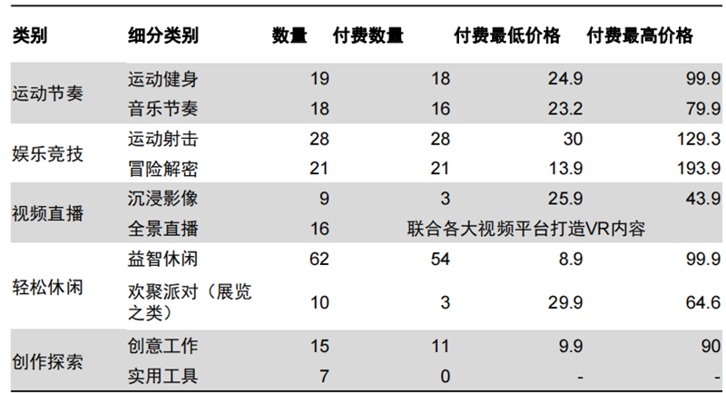 1)游戏:Pico的游戏内容一方面来源于自有Pico Store,另一方面Pico可以串流到Steam平台,从数量上看,目前Pico总应用数维持在200款左右,其中游戏占比约75%,Steam平台约6500款,Steam独占内容占比80%。