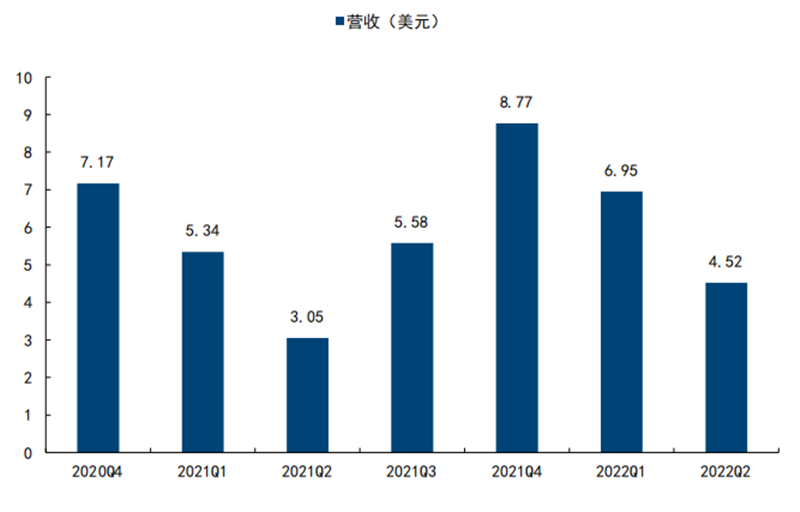 截至22Q2,Reality Labs实现营收4.52亿美元、同增48%,亏损28亿美元、同增15.38%。Reality Labs在21Q4收入大增主要因圣诞季的长效,2021年总亏损达到了100+亿美元,Meta在电话财报中表示,预计Reality Labs在2022年的亏损将显著增加。