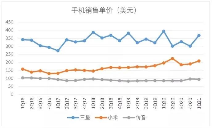 传音手机平均售价,来源:IDC,锦缎