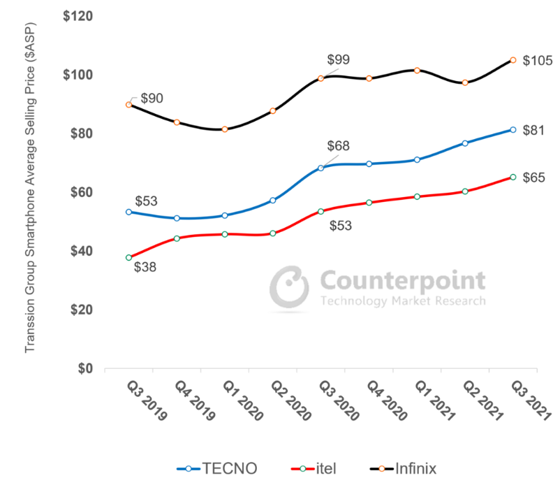 传音手机价格带,来源:Counterpoint