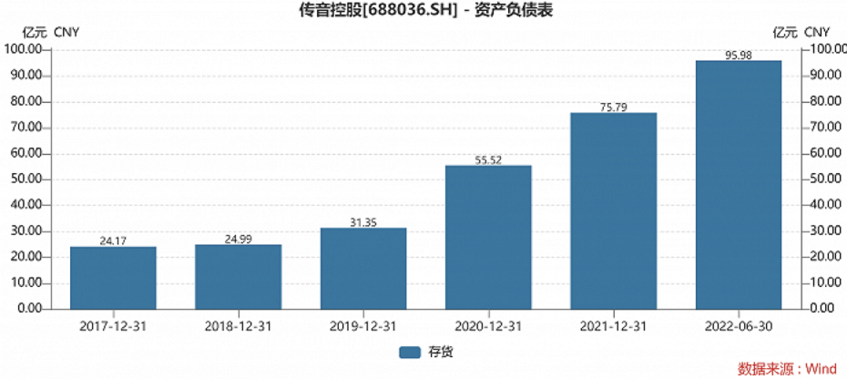 传音库存价值,来源:Wind