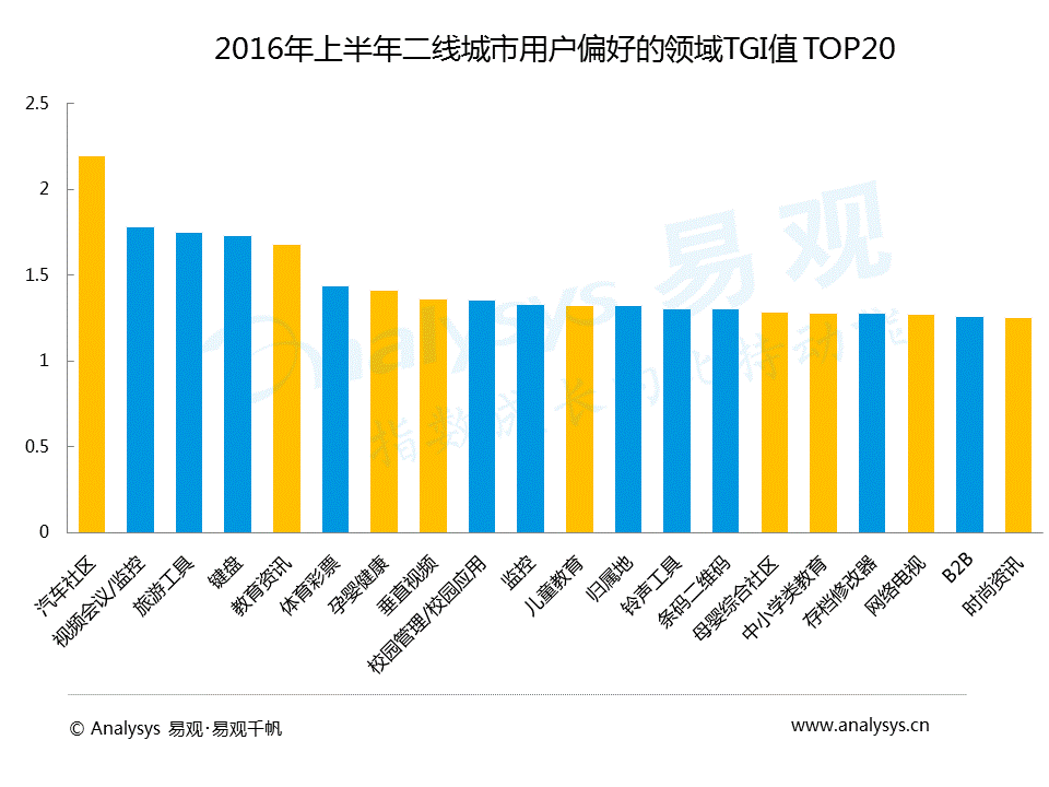 二线城市的用户非常关注孩子的教育和成长,同时他们爱看视频、关注时尚,喜欢与车友交流,更加注重生活休闲;