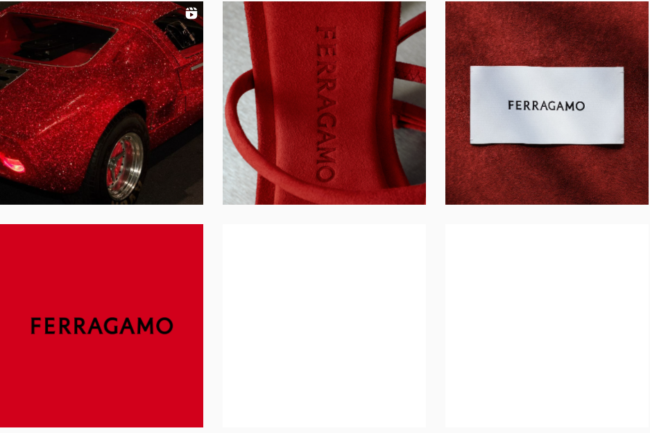 在其官方Instagram上,菲拉格慕以鲜艳的大红色展现全新视觉设计,保留过去旧贴文,仅以数个白格间隔,以展示其对品牌历史的传承。