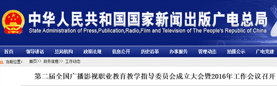 8月24日报道,国家新闻出版广电总局人事司召开第二届全国广播影视职业教育教学指导委员会成立大会暨2016年工作会议。会议聘任了第二届广播影视行指委委员,审议通过了广播影视行指委工作章程和2016-2017年工作计划,研究部署了教育部高等职业教育创新发展行动计划(2015-2018年)等相关工作任务。