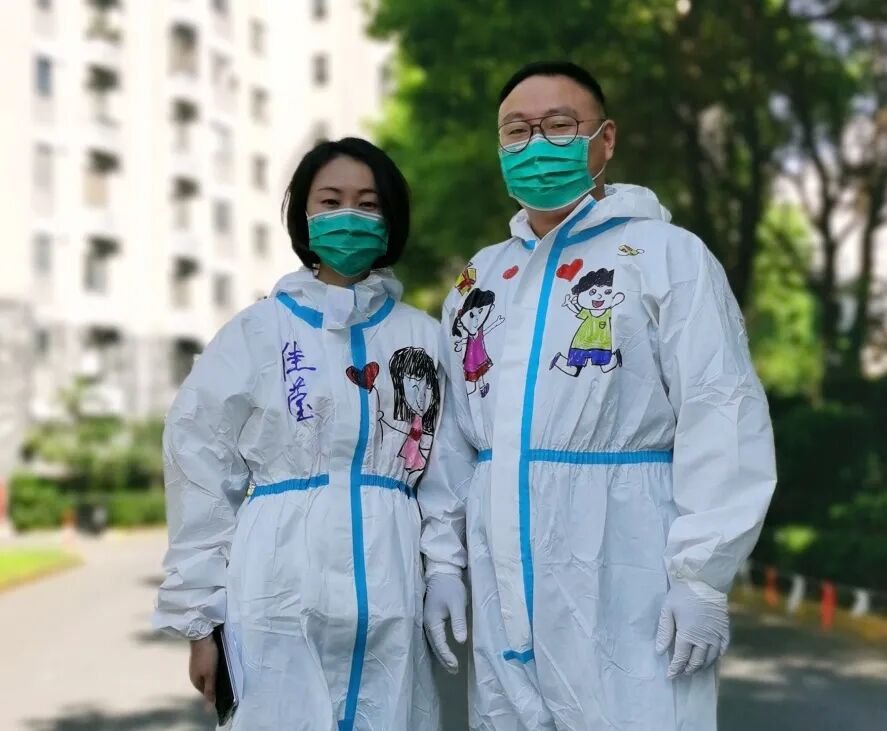 妻子彭凤英身为党员,作为大场镇乾溪七居居委副书记,全身心投入社区疫情防控工作,特别是4、5月上海封控期间,不分昼夜奋斗在社区,核酸检测采样、阳性病例转运、帮助居民解决各种问题,她就如一颗永不停止的陀螺,总能看到她穿着防护服穿梭在社区的身影。