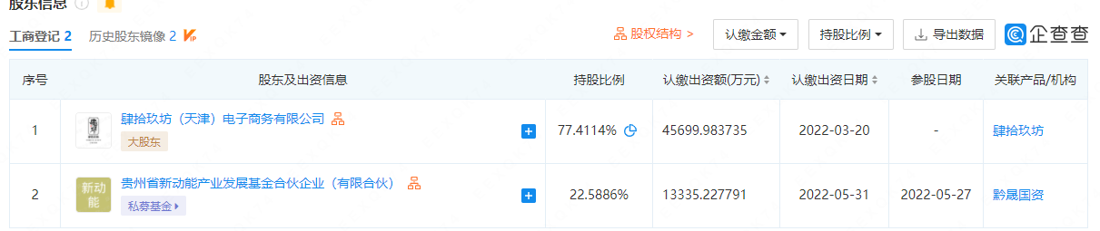 不过,外界的议论似乎没有影响肆拾玖坊对外融资的步伐。企查查APP显示,肆拾玖坊所属企业肆玖酒业于2022年5月下旬获得国资背景的贵州新动能1.3亿元投资。肆玖酒业注册地正是肆拾玖坊兰家湾项目所在的椿树村,因此,贵州新动能显然是奔着肆拾玖坊新建产能基地去的。