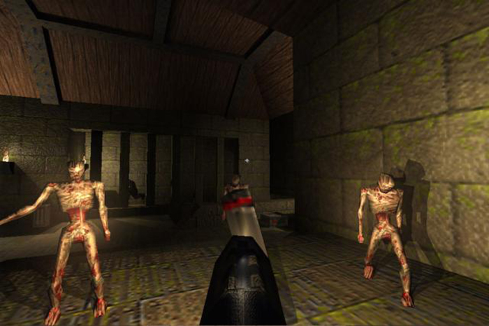《毁灭战士》(Doom)率先普及了第一人称射击游戏之后,1996年发布的《雷神之锤》将该类型提升至一个新高度,创造出空间感更足,表现力更强的3D世界。游戏的单人模式仍是对抗仿佛恐怖片中走出的邪恶力量,其本身非常优秀,但《雷神之锤》的最大贡献在于它开创了多人游戏模式。部分得益于更加快速的互联网,玩家可以和志趣相投的朋友组建“部落”,通过互联网和其他玩家进行“死亡对战”。游戏更先进的多边形引擎使得技术成为了该类型游戏的关键内容,玩家可以用小跳不断躲避敌人的火力,也可以用通过火箭发射器进行“火箭跳”,让自己占据有利地形。